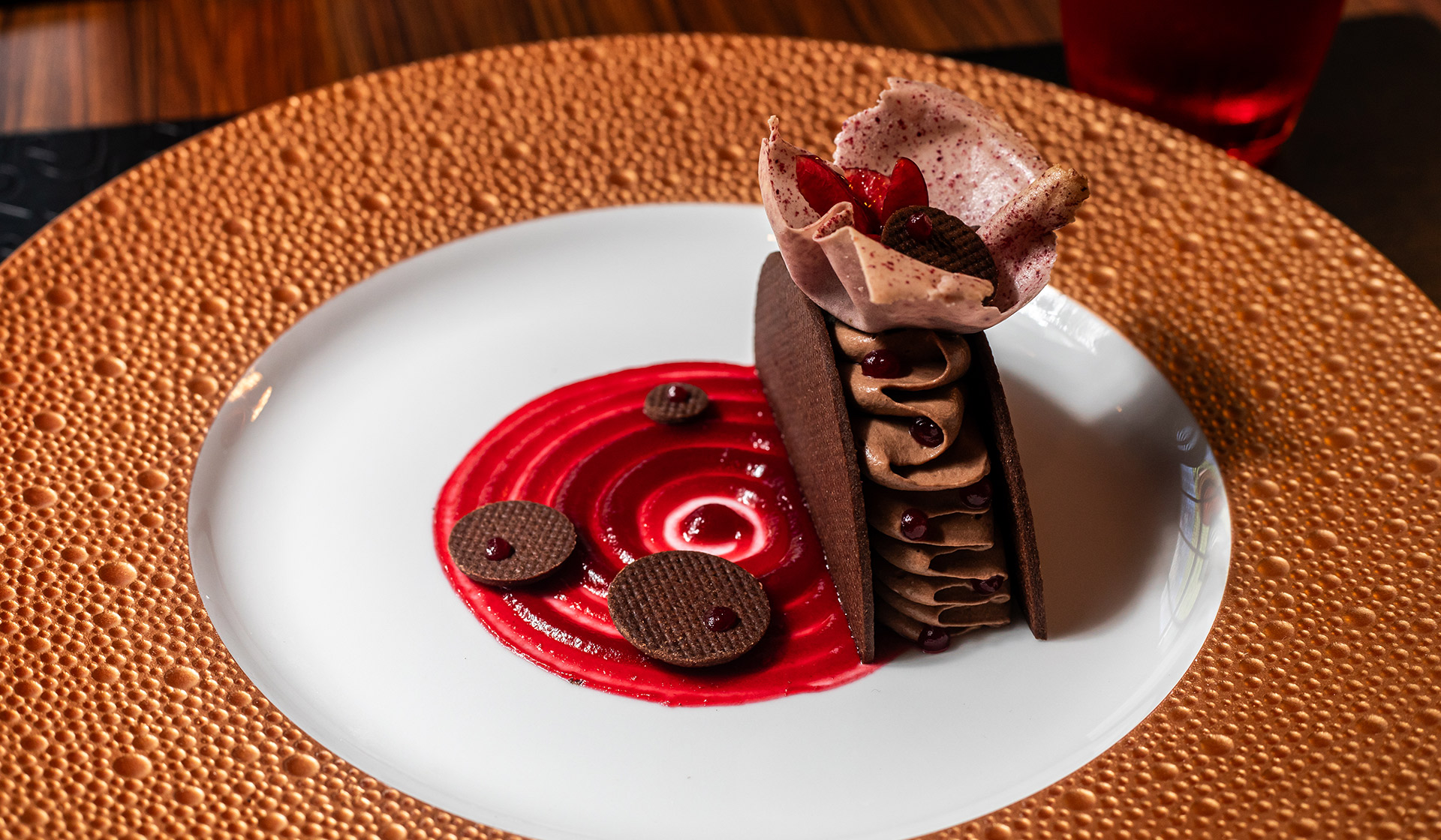 If you are looking for the full production like roses, tablecloths, and the works, L'Atelier de Joël Robuchon is the place to go. They have a violinist playing during a six-course dinner ($425) that features foie gras royale and sea bream with caviar. It is steep, but it is the only two Michelin starred spot in town. Downstairs, Le Jardinier is a slightly more relaxed alternative with a jazz band and a room full of roses. Their five-course menu ($180) focuses on seasonal plates and ends with a special dessert from chef Salvatore Martone.