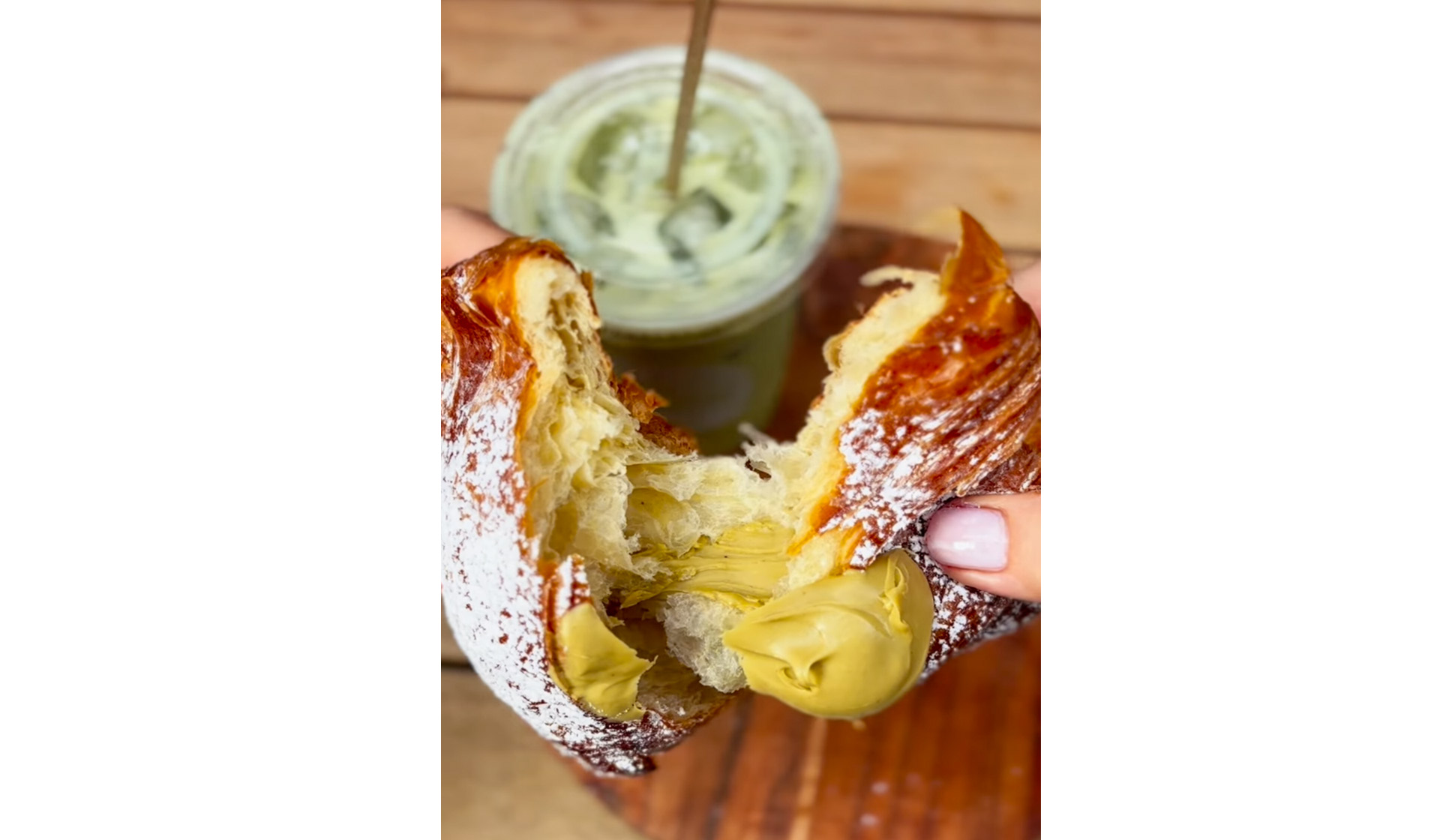 Maman's petite Palm Court location delivers matcha with Parisian flair. The French-American cafe combines childhood favorites from both sides of the Atlantic, and their matcha program reflects that same thoughtful approach.